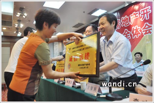 领导向获得2009年度“双放心”诚信房地产活动的诚信房地产单位授牌