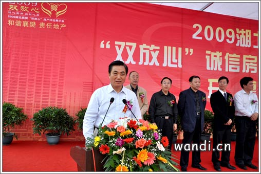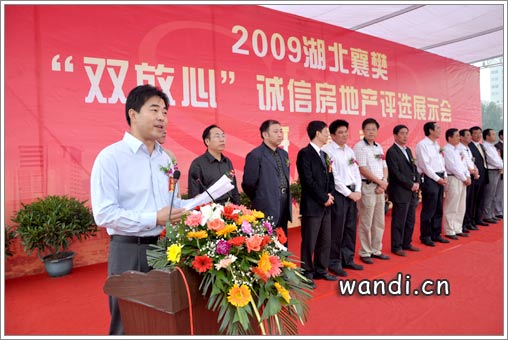 襄樊市委副书记万桃元宣布2009湖北襄樊“双放心”诚信房地产评选展示会开幕
