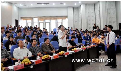 四组同学精彩的陈述结束,接下来是老师领导和外校企事业领导的更加精彩的点评环节。首先是刑显春老师对此次活动的点评,用朴实的陈词,有褒有贬,对实践公关学社提出了宝贵的发展意见:脚踏实地,张扬个性。陈昌宁教授兼中国电信代表的发言,提到大学生自信、知识和能力的培养和作用的充分发挥,一针见血,赢得一片欢呼。最后是由襄樊学院学工处处长罗华国教授做总结,他主要谈到三点“很激动,表达对本次活动的辛勤工作者的由衷感谢;很感慨,高度评价我校大学升活跃的态度和卓有见地的批评精神;很有想法,祝广大学子学友所成!