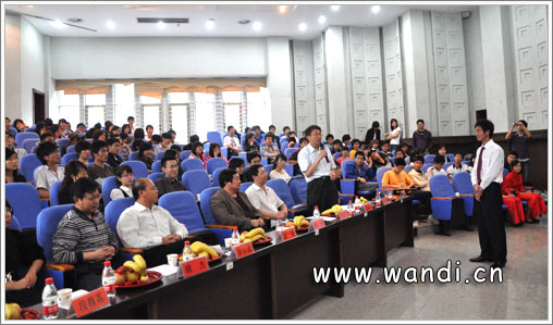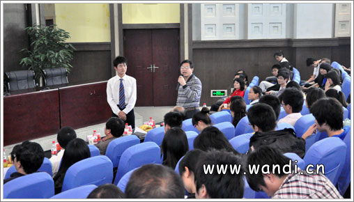 随后,第一组发言同学对在座嘉宾进行了简短的访谈,其中向襄樊商务网总经理石继军先生提到:“当我们大学生还在校园时,应该注意哪些问题?”石总经理给出了很精辟的回答,主要是在展现知识、能力、素质等关系方面,再者就是不能简单一味依靠别人。