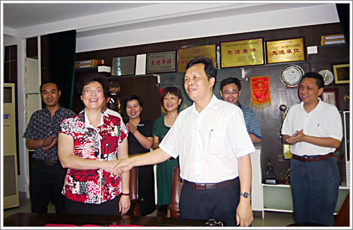 Xiangfan Federation of Industry & Commerce signed a cooperative deal named "Friendly Commerce" with Haikou Federation of Industry & Commerce, Chairman Wang sincerely invited the enterprises of Hainan to inspect and invest Xiangfan, with strengthening the mutual communication and building a stage to accelerate bilateral economical development.