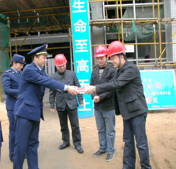 为加强建筑企业安全生产,帮助企业规范经营,襄樊市工商局专业市场分局近日开展了“送法进工地”活动。该局组织相关科室工作人员将《公司法》、《合同法》及涉及工伤处理、工程项目风险防范等专业的书籍送到航空工业襄樊医院专科楼建筑工地负责人和工人师傅手中,受到在场工人师傅们的热烈欢迎。