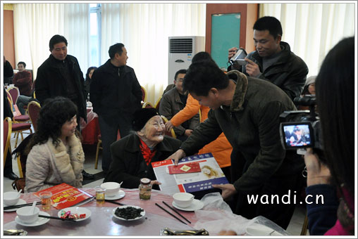 企业家给百岁老人送上新年的礼物