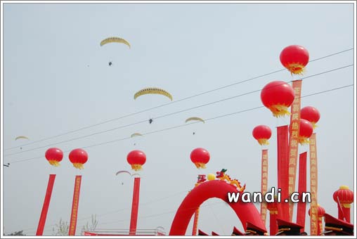 中国航宇集团为“襄阳卧龙生态文化度假旅游区”开工仪式举行了滑翔伞、热气球等精彩的空中特技表演。