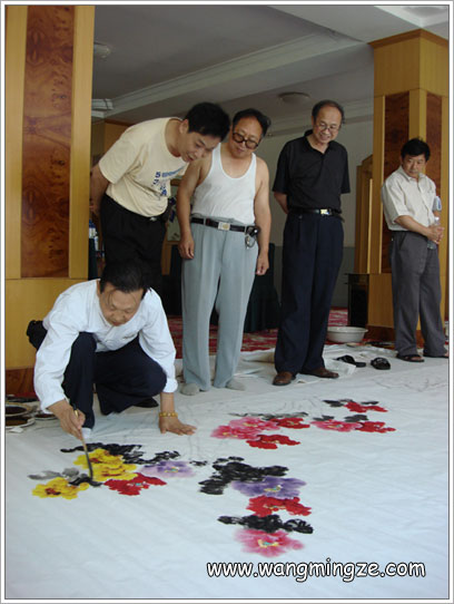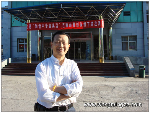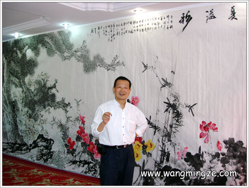 2007年7月上旬,2008年奥组委在全国各地邀请了近60位书画家,在河北涞源为2008和谐奥运创作巨幅中国画长卷。王明泽应邀主笔创作3m×8m花鸟卷《华夏溢彩》。