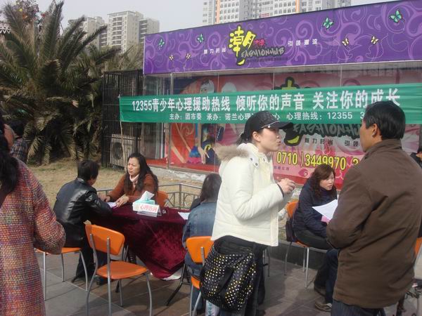 3月1日,襄樊市共青团市委组织我市诺兰心理咨询中心10余名青少年心理专家在市人民广场,向广大市民宣传、普及青少年心理健康知识。