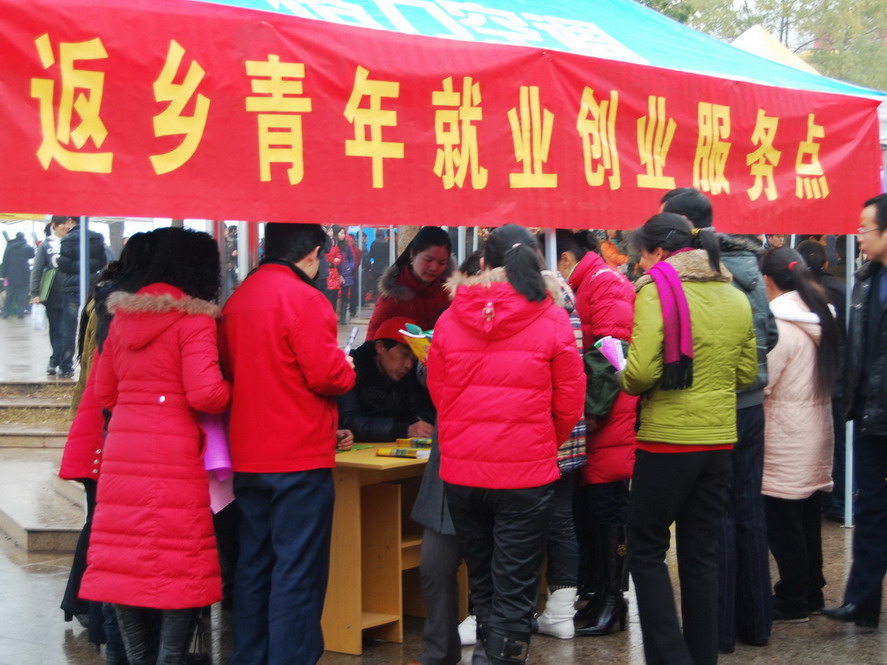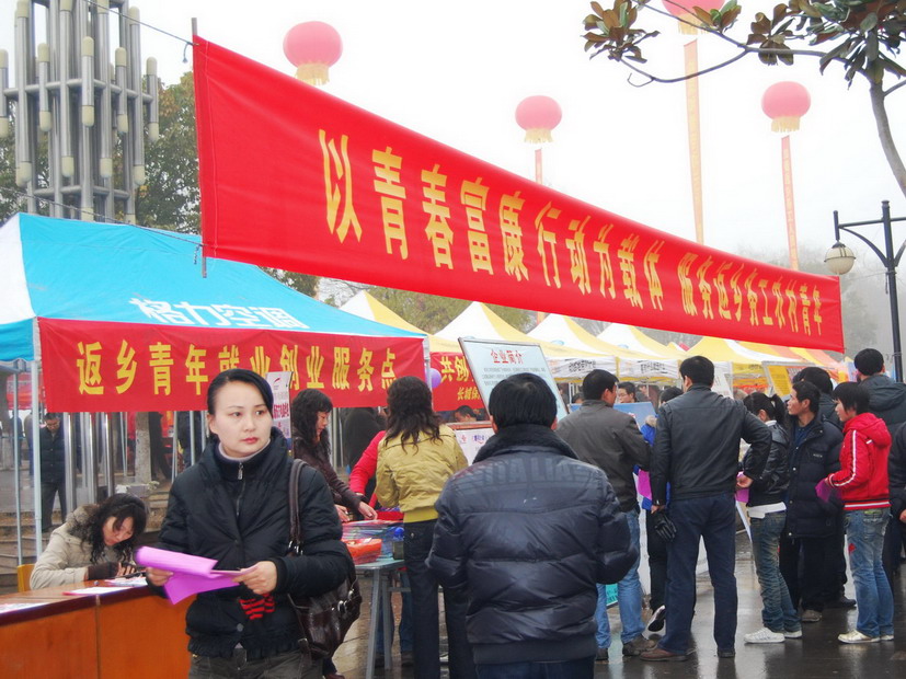 以招聘会为平台,团市委还设立了返乡青年就业创业服务点,大力宣传了“青春富康行动”、“阳光工程”技能培训和诚信创业计划等一系列帮助青年创业成才的活动,服务点吸引了众多返乡务工农村青年咨询,现场发放“新农村、新青年、新发展服务指南”、“致返乡创业青年的一封信”“田园小康项目、农村青年诚信创业”宣传单、共计6000余份。据统计,招聘会结束时,共有34家市内企业与2055名求职者签定了用工协议; 384名求职者与市外知名企业初步达成就业意向; 432名返乡农民工通过此次活动实现再就业;市内6所职业技术学校新招返乡农民工215人接受职业技能培训。同时,50余名青年志愿者为当天的现场招聘会提供志愿服务,受到组委会和广大应聘者的好评。 |
