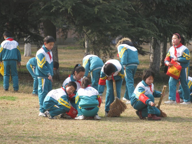 枣阳市第一实验小学的少先队员们也活跃在公园里,用扫帚、火钳、纸袋仔细地搜寻着垃圾