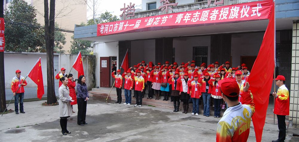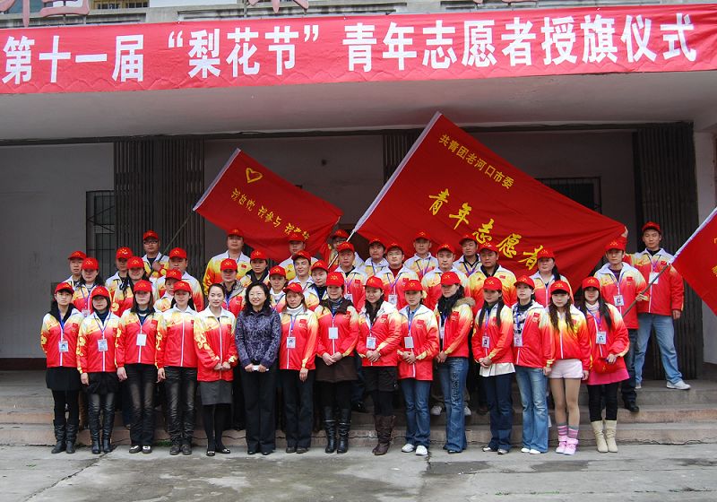 老河口团市委举行第十一届“梨花节”青年志愿者服务队授旗仪式