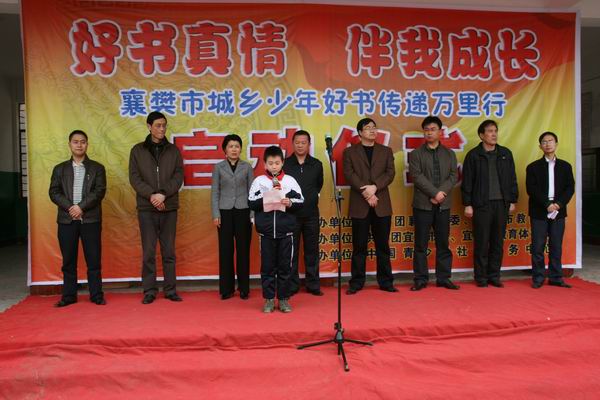 3月18日,襄樊宜城市环翠小学校园里春意盎然、阳光明媚,襄樊市"好书真情 伴我成长--城乡少年好书传递万里行"活动隆重启动。团市委副书记程博、中国青少年社会服务中心、市文明办、宜城市教育局相关负责人出席了启动仪式。