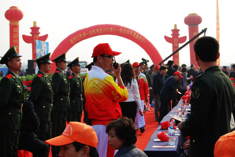 在老河口第十一届梨花节暨第二届黄河大合唱艺术节开幕式现场,身着鲜艳礼服的青年志愿者热情周到的为与会来宾和观众提供义务服务,受到了来宾和观众的热烈称赞,在开幕式现场各个座位区,都有青年志愿者活跃的身影,他们为观众当向导,指引座位,向观众免费发放小红旗、节目表等,解答各种问题,成为开幕式活动现场的一道靓丽风景。
