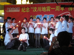 5月12日,为了缅怀消逝的生命,纪念汶川地震一周年,团枣阳市委、枣阳红十字会、枣阳商业大厦在大厦门口联合举办“5.12一起点亮爱”——纪念汶川地震一周年募捐文艺晚会。枣阳市政府副市长邱光秀、枣阳团委副书记史永进、枣阳红十字会副会长杜宏出席了晚会。
