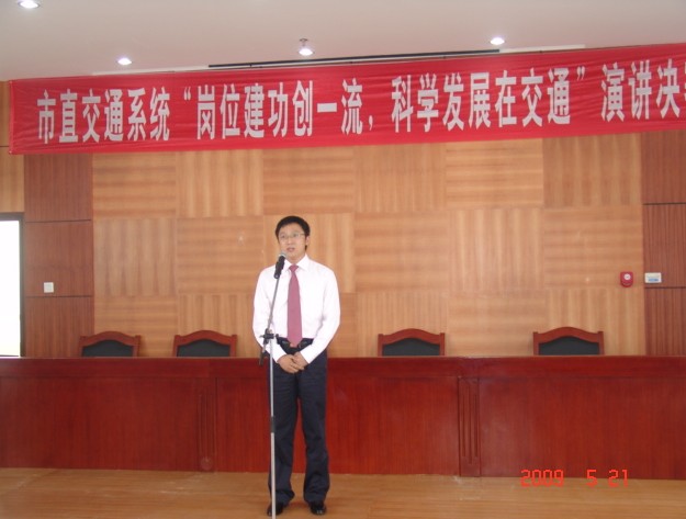 为鼓励广大团员青年立足岗位,奋发进取,克难攻坚,勇创一流,以实际行动全面贯彻落实市局党委“提神、提速、提效、保发展、保落实、保双廉”(简称“三提三保”)的具体要求,促进襄樊交通事业科学发展,局团委在市直交通系统团员青年中举办了“岗位建功创一流,科学发展在交通”演讲比赛。这也是局团委于3月中旬启动的青年“读书、成才、建功”活动的一项重要内容。演讲比赛分预赛、复赛和决赛三步进行。市运管处、市公路处、市公交总公司、市交通规划设计院等4家单位分别举办了预赛。5月8日市直交通部门9家单位的15名选手参加了局里的复赛,精选出6名选手进入决赛。