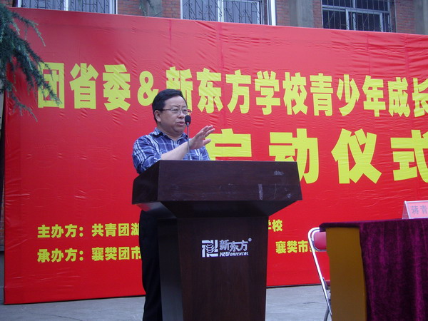 6月4日,“团省委·新东方青少年成长教育健康行活动”启动仪式在襄樊市41中隆重开幕。参加此次启动仪式的领导有团省委权益部部长蔡卿、武汉新东方学校校长李杜、团市委宣传部部长孙喜等领导。此次活动是团省委联合武汉新东方学校为完善青少年成长教育,引导家庭、社会以正确的方式与青少年沟通,帮助青少年健康成长的一个系列活动。襄樊作为活动的首站,选取襄樊41中、襄樊33中和襄城昭明小学进行讲座。启动仪式后,武汉大学教授周运清为前来参加活动的400多名家长进行了一场生动的,主题为“如何做个好家长”的讲座。
