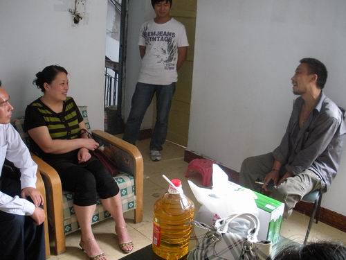 按照樊学组发[2009]11号文件《关于在全区党员干部中深入开展“听民声、访民情、解民难大走访”主题实践活动的实施方案》的要求。8月7日下午,共青团樊城区委在屏襄门办事处丹江路社区工作人员的陪同下,联合品人堂素质拓展机构及襄樊学院心理咨询师陈琳老师,慰问了该社区的低保户李某,期间陈老师与李某进行了一个简短的心理交流,使在场人员对李某的家庭情况有了更深入的了解。团区委决定对其子女今后的学习提供一定的帮助;素质拓展训练机构品人堂及陈老师个人都与李某结成了长期的帮扶对子。团区委希望大家共同努力,为李某子女的身心健康发展创造一个良好的生活与学习环境。 |