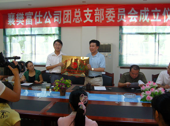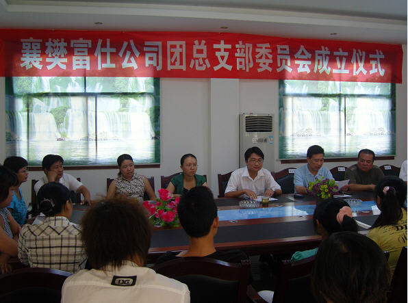 襄樊富仕纺织服饰公司是由县招商引资,与温州客商组建的一家民营股份制企业,公司于2006年3月投产,现已成为集纺纱、织布为一体的综合性纺织企业,公司现有员工463人,其中28岁以下青年110人,28岁以下团员青年81人。为增强团员青年的凝聚力、战斗力,襄樊富仕纺织公司党支部经过几个月的筹备,在团县委的大力支持下,建立了公司团总支。