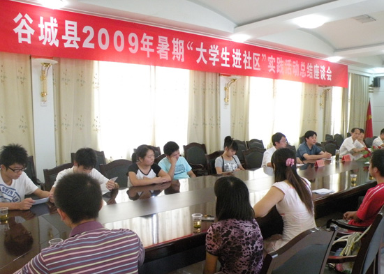 8月13日,谷城县2009年暑期“大学生进社区”主题实践活动总结座谈会在县委组织部四楼会议室举行。