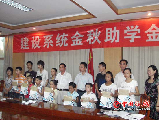 谷城县建设系统“金秋助学金”于2008年开展以来,得到了社会各界的广泛支持和爱心人士的踊跃参与。今年的助学活动又得到广东打工的谷城籍爱心人士刘娟女士和襄樊联通公司谷城分公司的资助。资助仪式上,建设局领导为11名特困生颁发助学金,其中小学生每人300元、初中生每人400元,高中生每人500元,累计发放助学金4100元。 发放仪式上,受到捐助的学子们用诚挚的话语表达了对团组织的感激之情,表示一定要把团组织的关心、社会的关爱转化为立志成才、报效祖国、回报家乡的强大力量,以实际行动来回报社会。