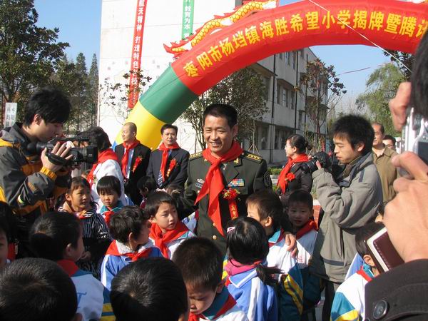 11月3日上午,欢声雷动,彩旗飘扬,由腾讯科技(深圳)有限公司捐资25万元援建,并以航天英雄聂海胜名字命名的枣阳市杨垱镇“海胜希望小学”,在英雄的家乡——枣阳市杨垱镇举行了隆重的竣工庆典。航天英雄聂海胜、腾讯副总裁郭凯天先生、枣阳市委书记岳兴平、襄樊市教育局局长李菲、省青基会副秘书长彭长春、襄樊团市委书记龙小红等领导出席竣工庆典。