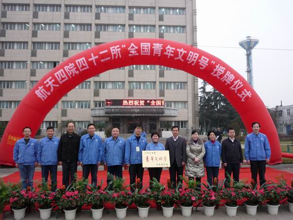 3月2日,“全国青年文明号”的授牌仪式在航天四十二所隆重举行,共青团湖北省委副书记吴朝安为获奖的青年集体授牌,并做重要讲话,团市委书记龙小红、团省委青年就业创业促进中心副主任李潺及42所相关领导出席仪式。