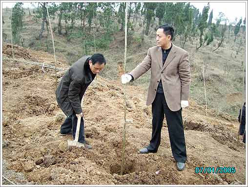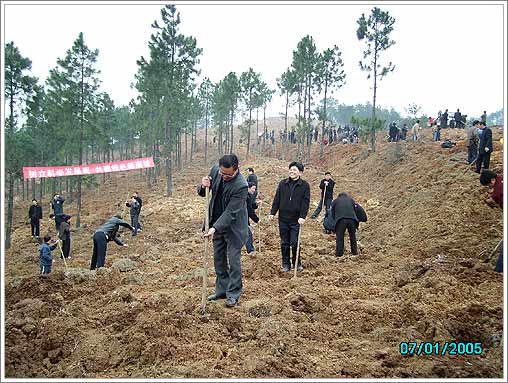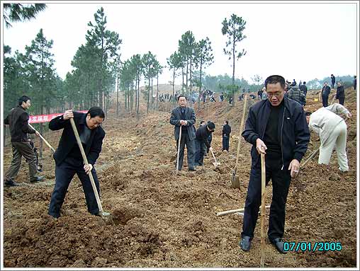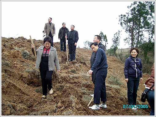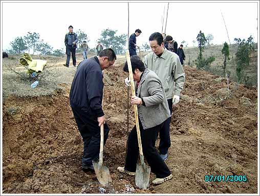 3月10日上午,徐应安,曹平,武顺吉,周智慧等在家的区政协领导和政协机关人员一同来到尹集乡林场,参加“绿化襄樊,保护生态”为主题的义务植树活动。民建襄城总支也参加了此次活动。从挖树窝到扶苗,培土,大家对每一个环节都做的非常认真。植树现场,人头攒动,彩旗飘扬,参加植树的人们有的挖窝,有的扶苗,有的培土,有的浇水,大家都兴致勃勃,一派忙碌景象。两个多小时后,近千株杨树苗整齐的排列在山坡上,望着刚刚种下的树苗,大家都露出了开心的笑容。