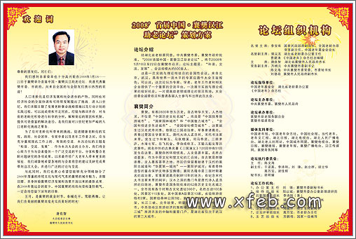 经湖北省老龄办、中共襄樊市委、襄樊市人民政府批准,2008′ 首届中国·襄樊汉江助老论坛将于5月18日—22日湖北襄樊举行。组委会已向全国涉老部门和相关企业发出了邀请函,大会网站www.xfeb.com/zhuiao也同步开通。 据了解,本次论坛由中国老年基金会、湖北省老龄委、《中国老年》杂志社为指导单位、中共襄樊市委、襄樊市人民政府主办,论坛主题为“ ”。 论坛分学术交流、汉江老年旅游节、中老年用品展示、政府招商项目推介、大型文艺演出、参观访问6大部分,参与人员预计500人左右。详情请登陆大会网站www.xfeb.com/zhuiao或邮箱:xfzlh99@163.com